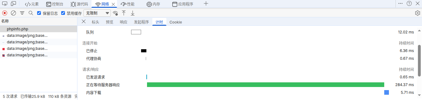 查看数据:在请求列表中点击网站首页域名 → 右侧切换至Timing(计时)标签,找到 Time To First Byte (首字节或等待服务器响应)字段,即为当前TTFB耗时。
