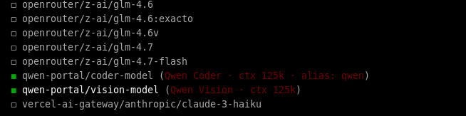 授权成功,云服务器终端显示大模型列表,默认已勾选了千问大模型,直接回车即可: