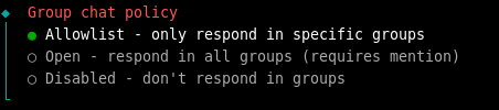 设置群组功能,如果不需要群组功能请选择Disabled,如果需要群组功能,推荐选择Allowlist: